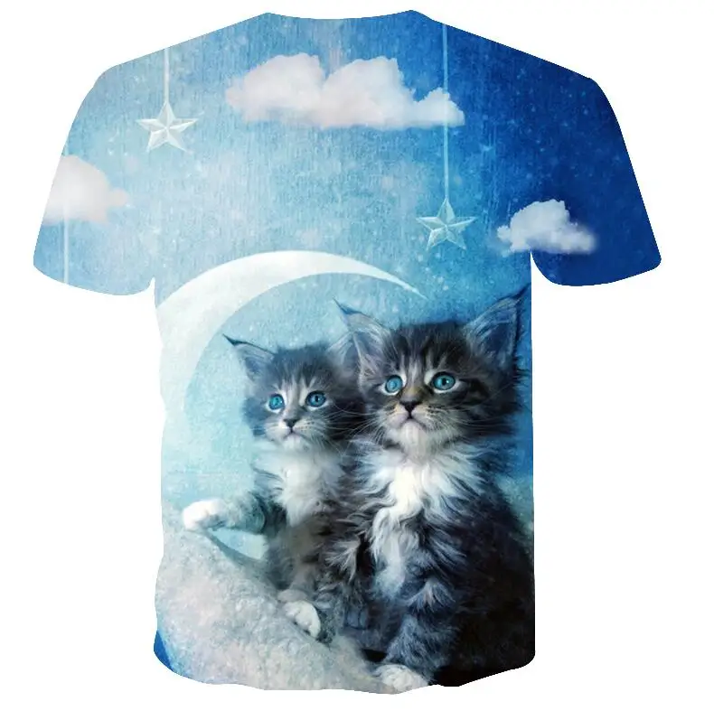 Лето 2021! Детская футболка с мультяшным котом, 3D Рисунок для девочек, Детская уличная одежда, Забавная детская футболка с круглым вырезом, футболка