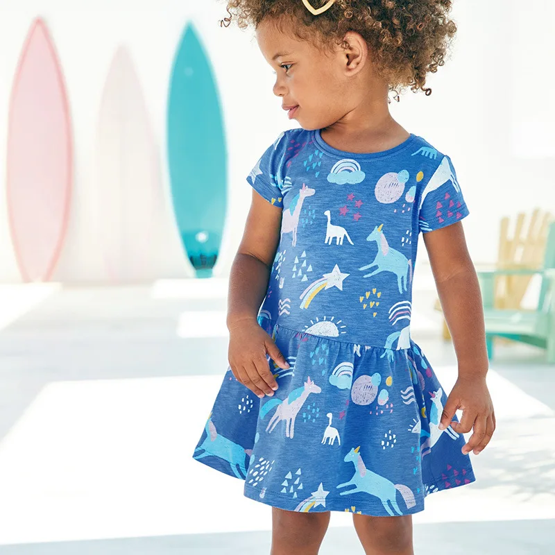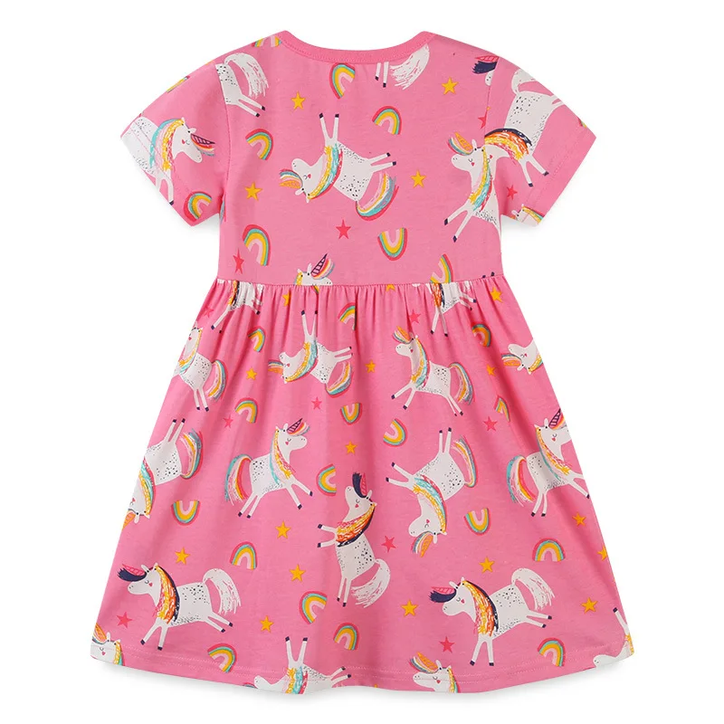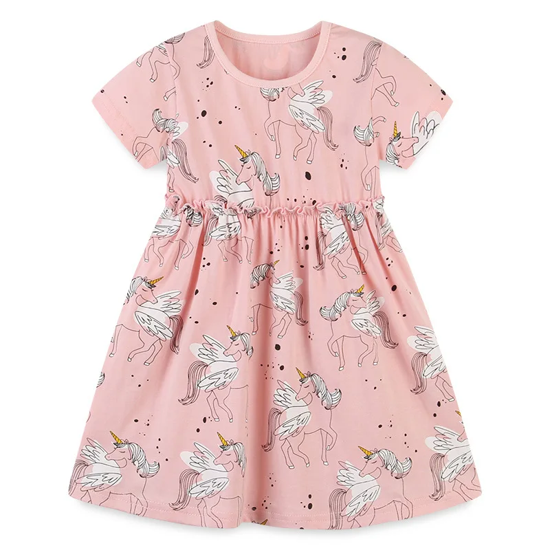 Летнее платье для девочек с короткими рукавами и принтом платья для маленьких девочек трикотажные хлопковые носки с рисунками из мультфильмов; Милые платья От 2 до 7 лет; Платье принцессы для девочек