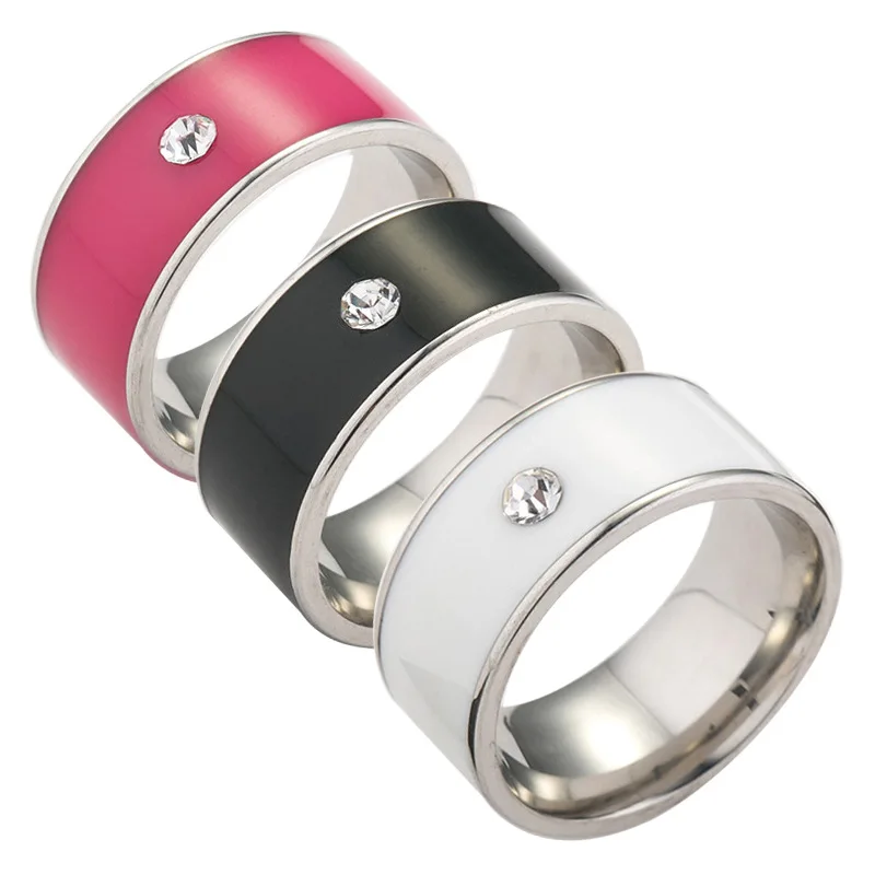 Мужские и женские кольца из нержавеющей стали с кристаллами, черног...