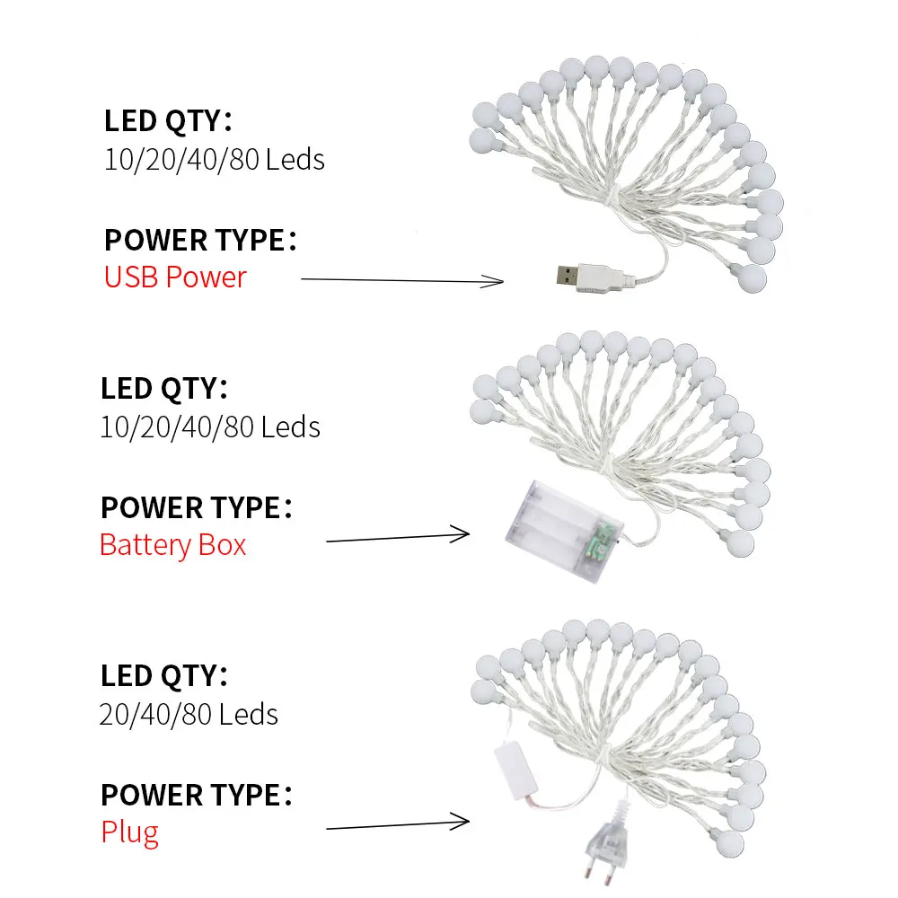 Тип питания: батарейный блок/USB питаниеДлина: 1 м/3 м/6 м/10 мСветодиодный: 10 светодиодный/20 светодиодный/40 светодиодный/80 светодиодныйМатериал корпуса: ПВХСертификация: CE, ROHSДиаметр шаровой лампы: приблизительно 1 смСрок службы: 50000 часовВход напряжение: 4,5 V (10 светодиодов/20 светодиодов нужно 2xAA батарея, 40 светодиодов/80ledsneed 3xAA батареи) батарейка не входит в комплектЦвет освещения: белый/теплый белый