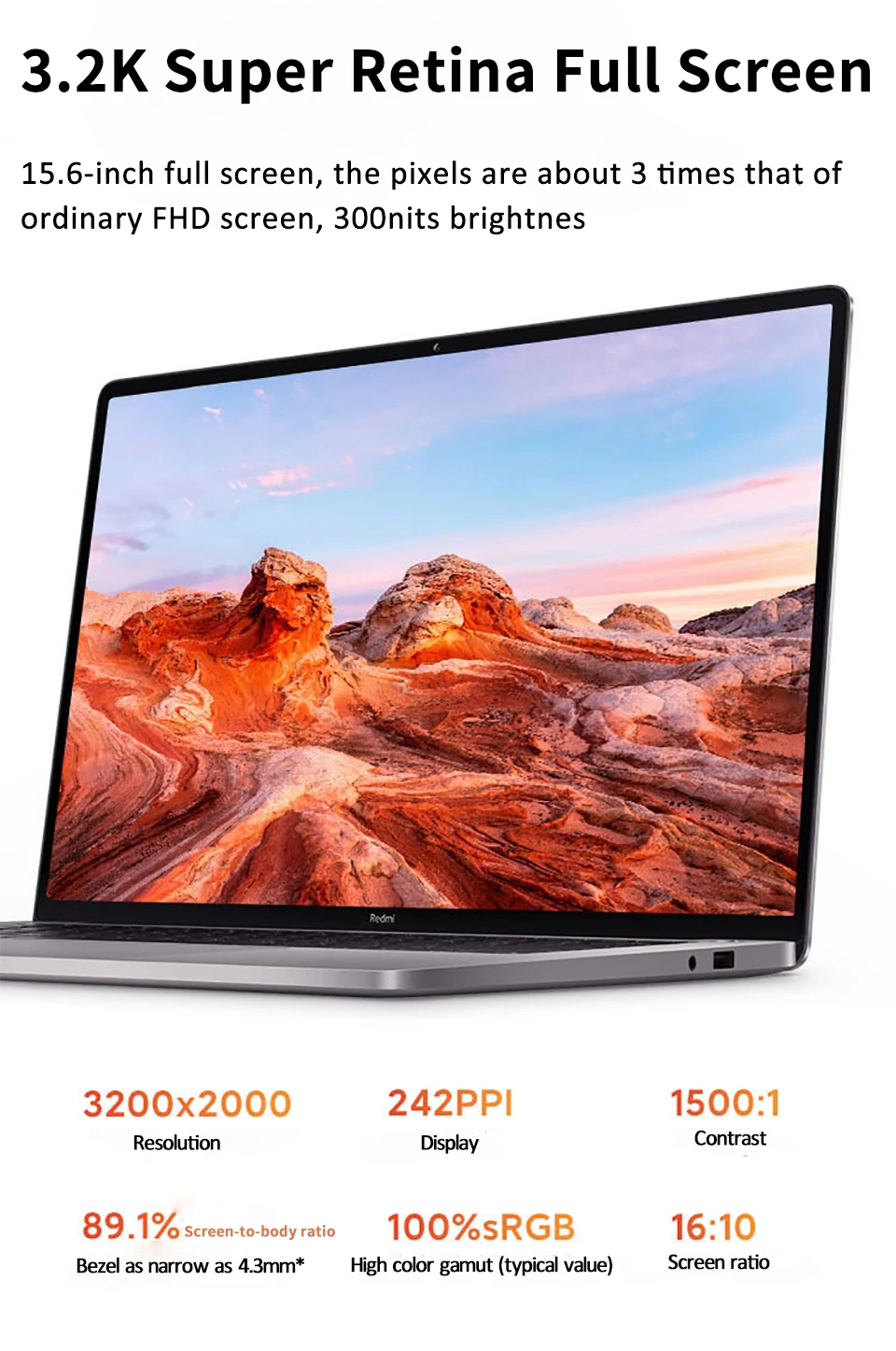 Ноутбук Xiaomi RedmiBook Pro 15, глобальная версия дюйма, Intel MX450, i7-11370H дюйма, 16 ГБ, 512 Гб SSD, FHD экран 3,2 K, Windows 10 Pro, 2021 дюйма