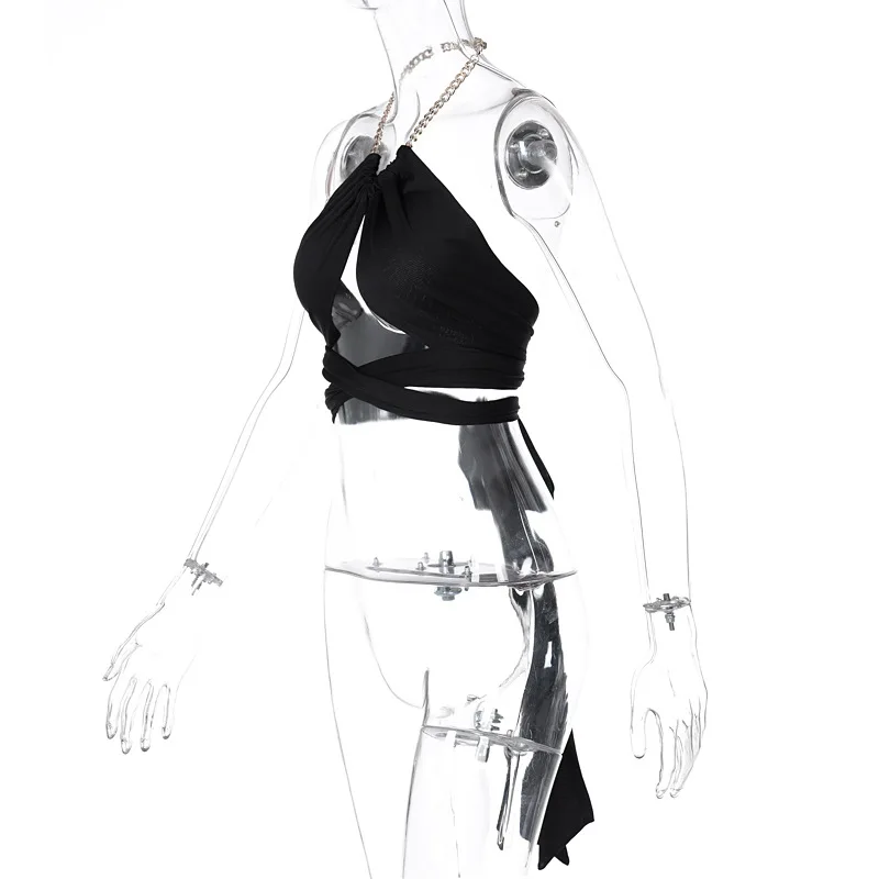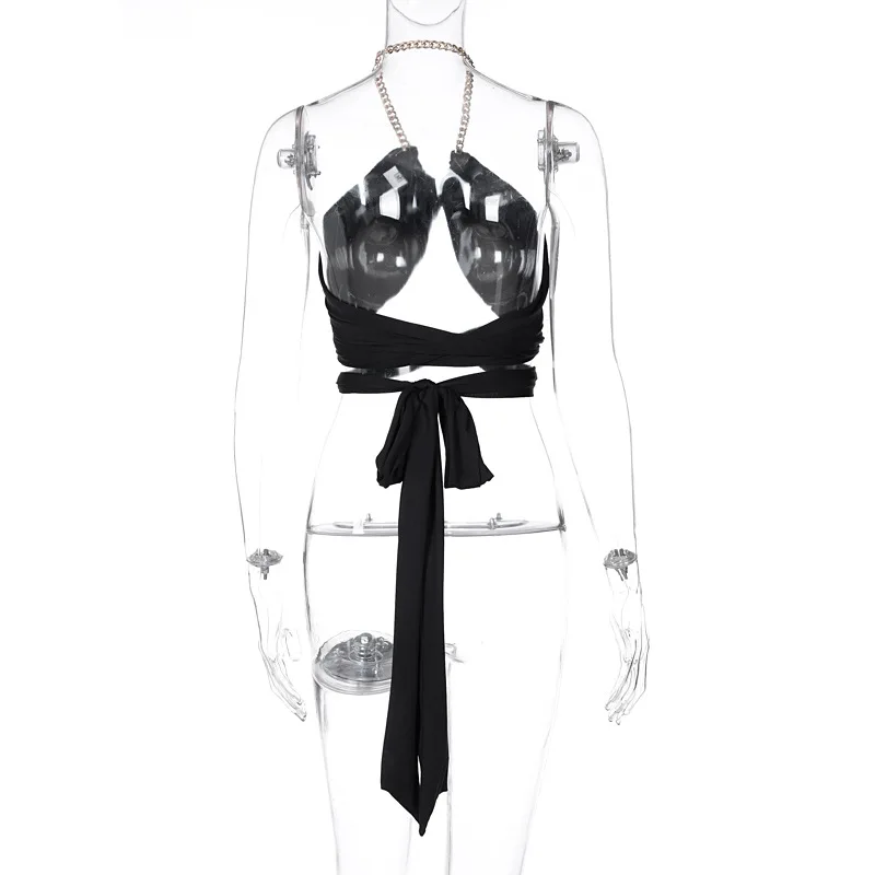 Женский укороченный топ с лямкой на шее, летний клубный бандажный топ на шнуровке с открытой спиной и перекрестными вставками, Y2K, 2022