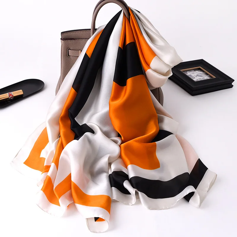 Женский атласный шелковый шарф с цветовым принтом, летнее солнцезащитное пляжное полотенце, новинка, шаль 180 х90 см, модный шейный платок, дорожная бандана