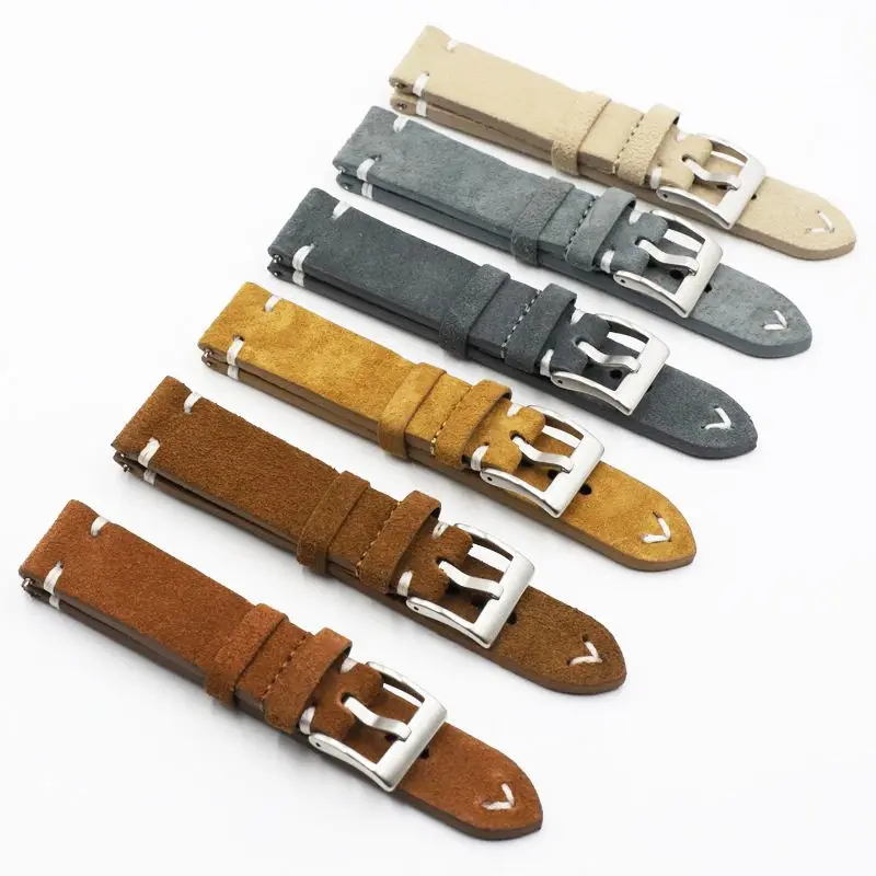 Винтажный велюровый кожаный ремешок для часов 18 мм 20 мм 22 мм 24 мм сменный ремешок аксессуары для часов Пряжка из нержавеющей стали