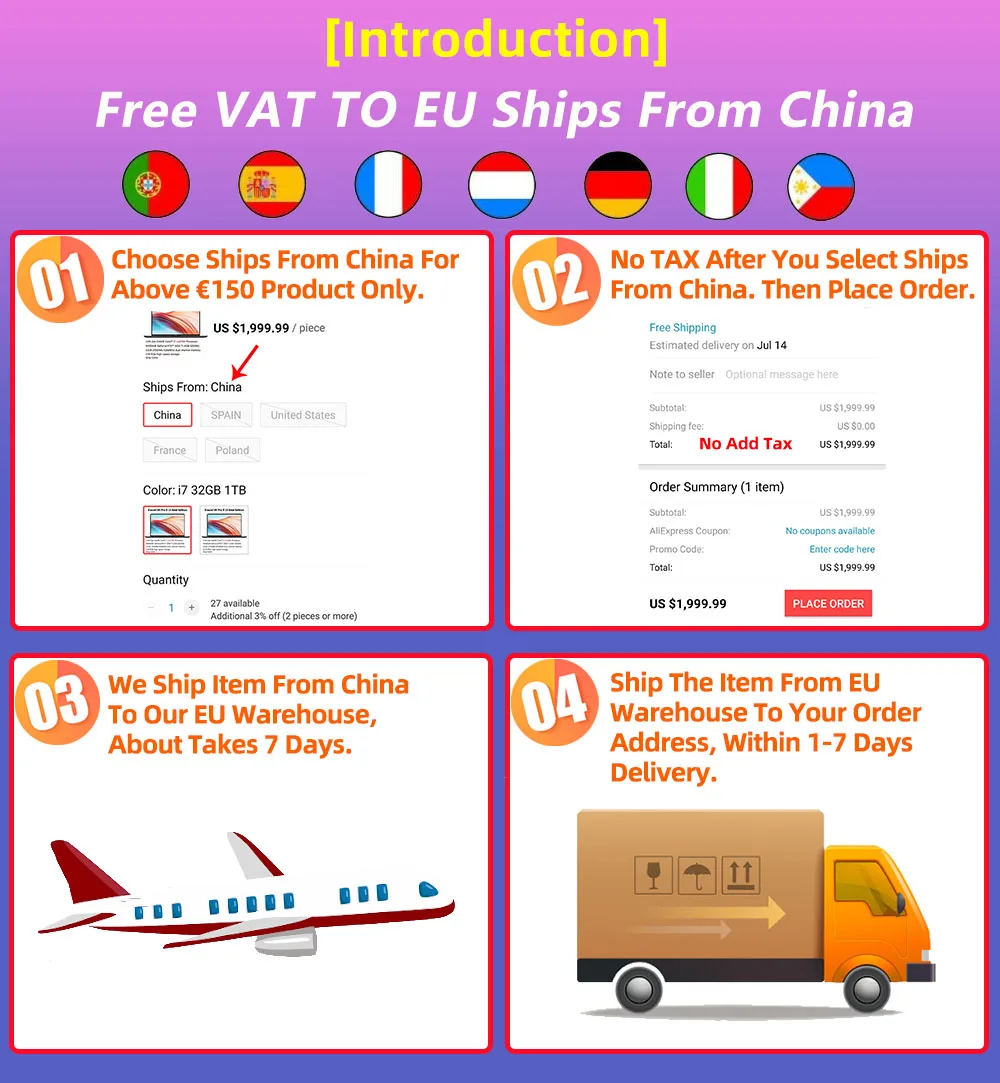 О НДС и таможенной пошлине• Выберите доставку из Китая для более чем 150 евро товара без НДС и таможенной пошлины (ниже страны):• В состав стран входят: Российская Федерация, Испания, Франция, Италия, Германия, Польша, Португалия, Нидерланды, Бельгия, Ирландия, Литва, Венгрия, Австрия, Чехия, Швеция, Эстония, Дания, болгария, Словакия, Словения, Финляндия, Хорватия, Литва, Люксембург, Греция, Румыния, Соединенные Штаты.• 【Выберите доставку из Китая в страны ЕС для более чем 150 евро. Из-за того, что наша компания уже уплатила НДС и налог DDP в налоговый Отдел Европы.После того, как вы выберете доставку из Китая. На самом деле. Мы отправляем товары со склада ЕС, как правило, в наличии товары могут быстро доставляться в течение 1-7 дней. Более подробная информация: https://www.aliexpress.com/item/1005002939728133.html?spm=5261.ProductManageOnline.0.0.5d574edfBzegpO• Исключая указанные выше страны, наши цены не включают налог, товар будет отправлен DHL экспресс-почтой. Мы не несем каких-либо таможенных расходов. Если покупатель отказывается платить налог, покупатель должен будет покрыть высокую стоимость возврата. Если ваш адрес относится к удаленному региону, покупатель должен нести ответственность за оплату DHL отдаленной области ($35-$45).