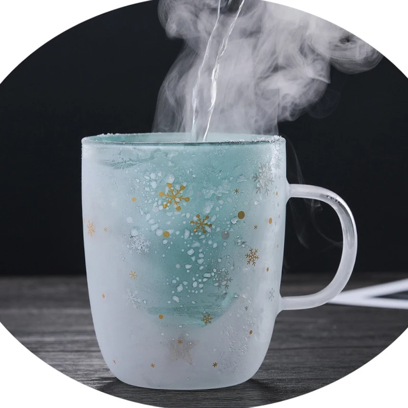 Двухслойная стеклянная чашка с защитой от ожогов, рождественская ел...