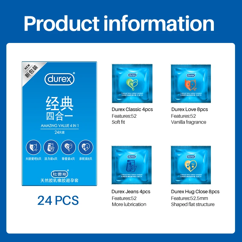 Латексные презервативы Durex, 4 в 1, 24 шт., 4 типа, для мужчин, 52...