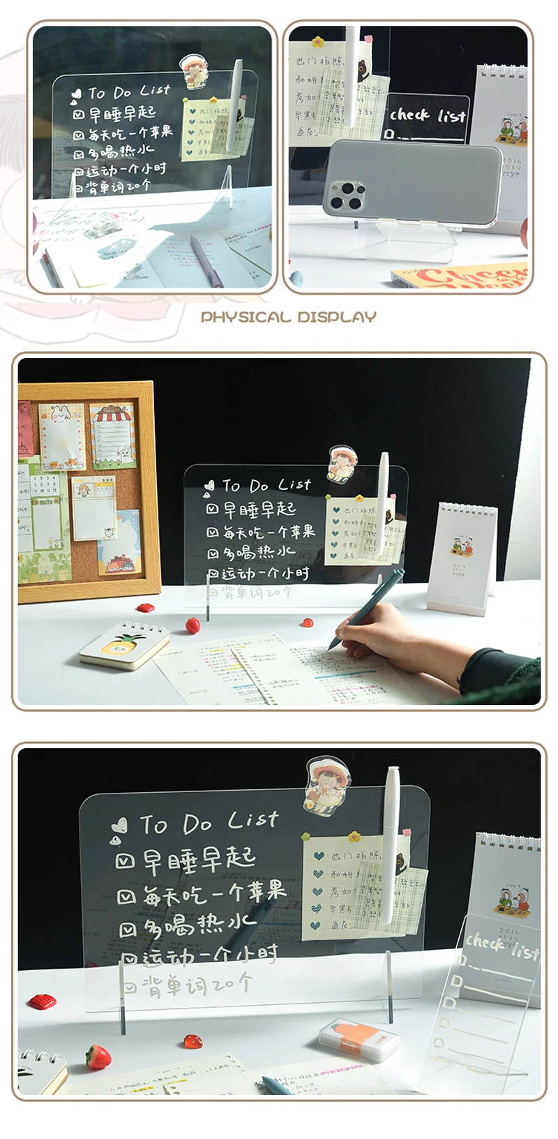 Креативная прозрачная акриловая доска для заметок, доска для заметок, Именная Карта, держатель для телефона, настольный пластиковый держатель