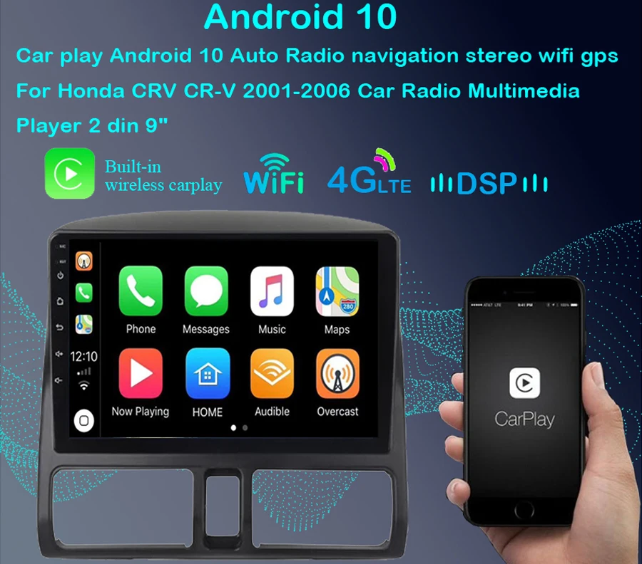 Автомагнитола на Android 10,0 с GPS для Honda CRV 2 2001 - 2006 2 din dvd