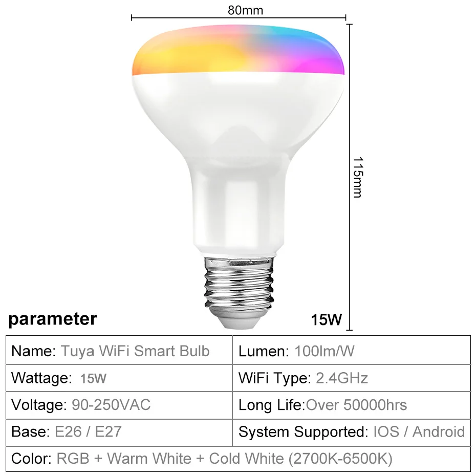 Тип: светодиодный смарт-лампочка Tuya WiFi