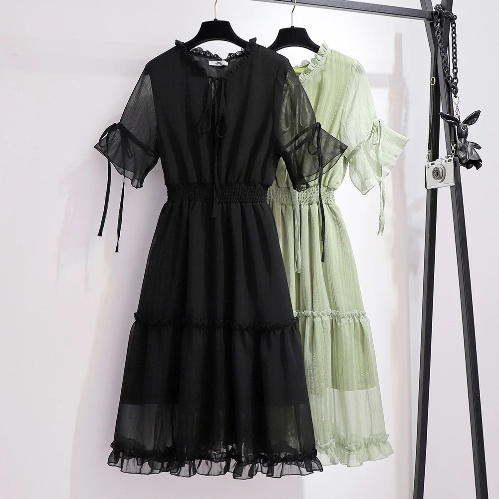 Элегантное праздничное платье с коротким рукавом и рюшами размера плюс, модное женское летнее платье, женское шифоновое платье