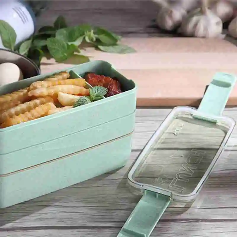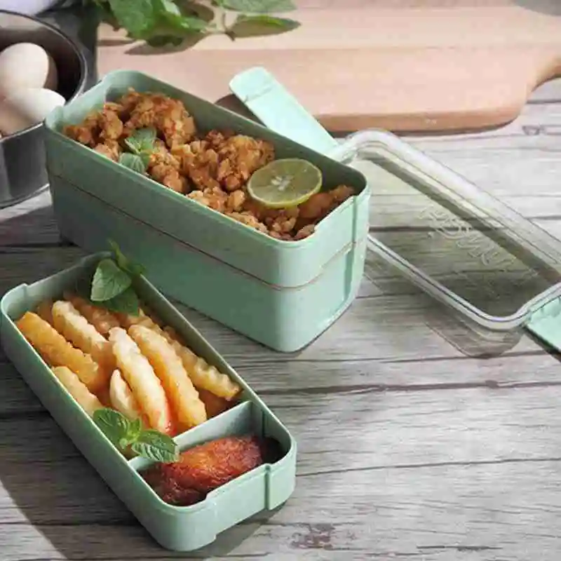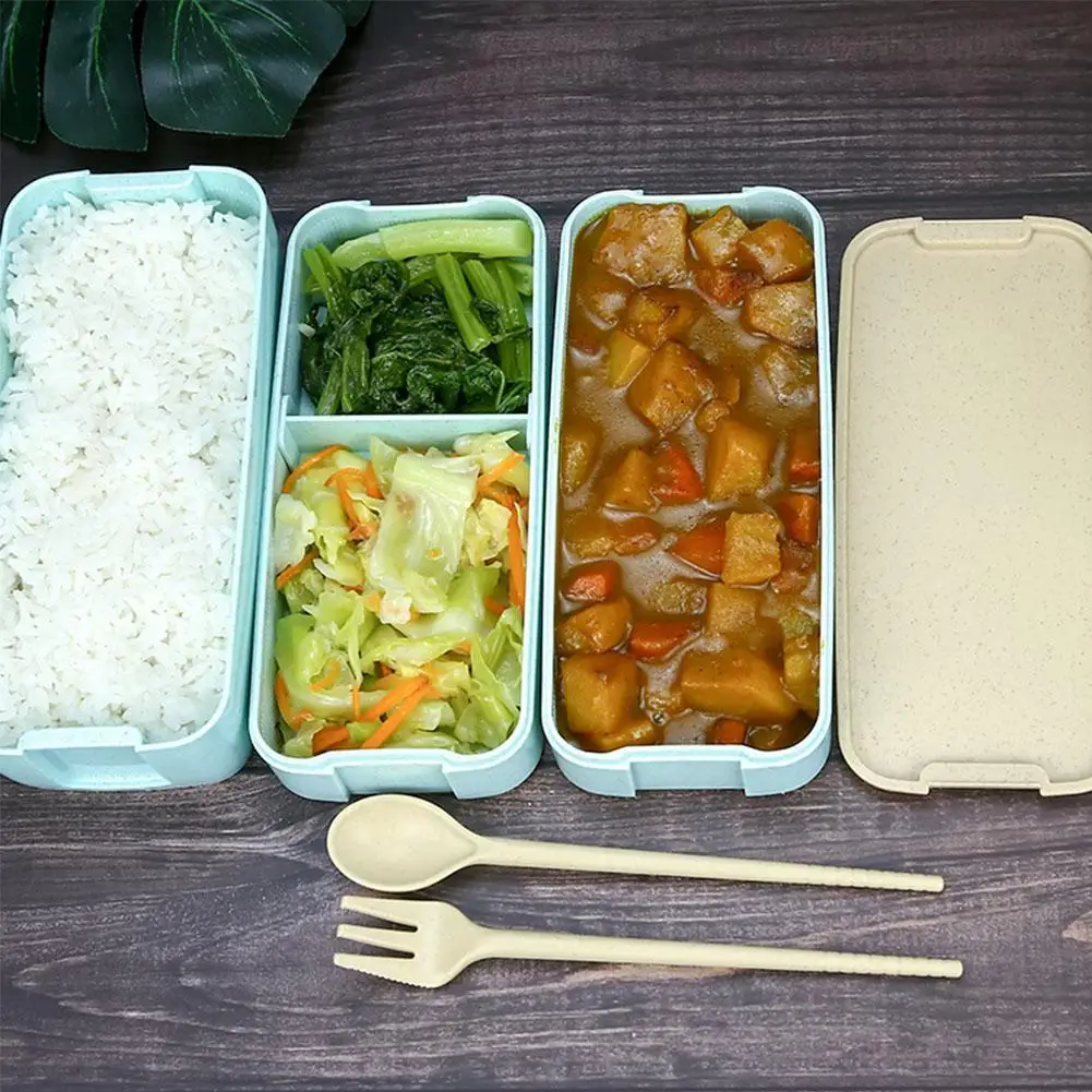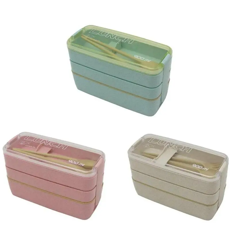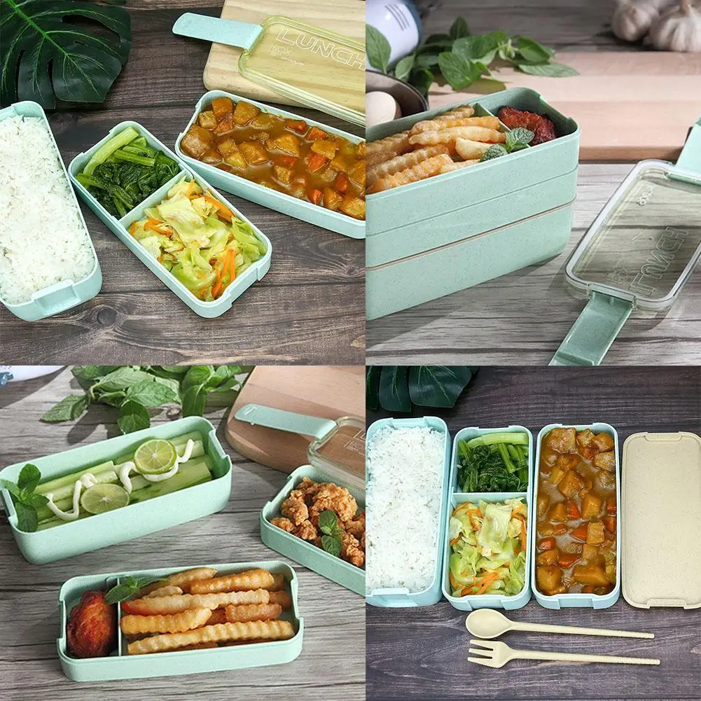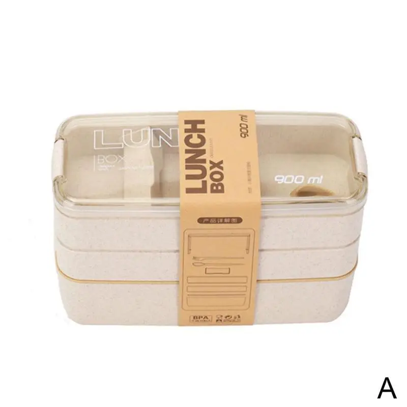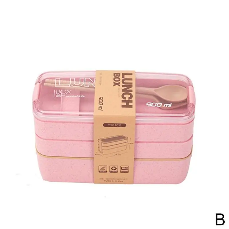 Ланч-бокс из здорового материала, 3-х слойный контейнер для хранения пищевых продуктов, столовая посуда Bento Box, для микроволновой печи, S4I8, 800-1000 мл