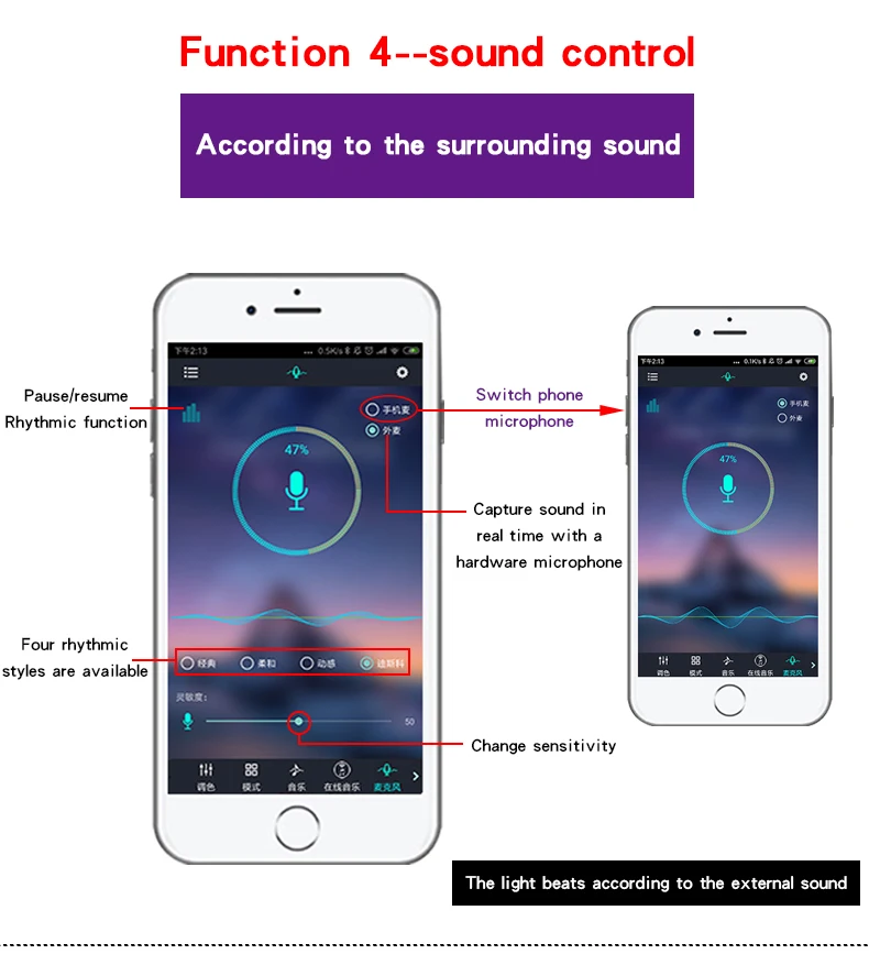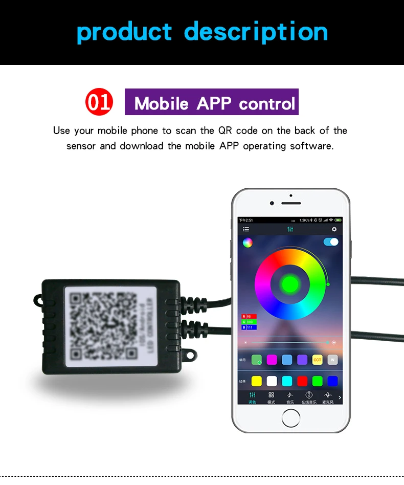 Звуковой активный EL неоновый провод полоса освещения Bluetooth APP...