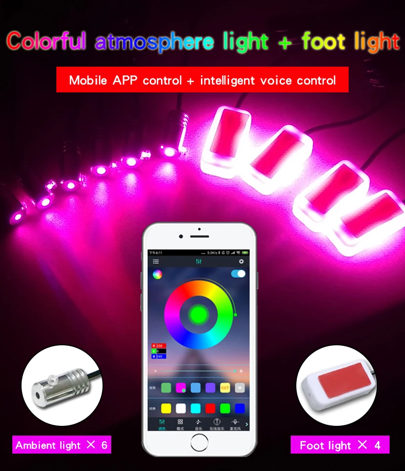 СВЕТОДИОДНЫЙ Автомобильный ножной окружающей среды светильник с usb-сигарета светильник er Подсветка светильник музыка Управление приложение RGB Авто декоративная интерьерная стенная панель атмосферу светильник s