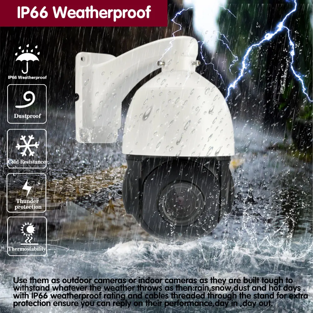 Используйте их в качестве наружных камер или внутренних камер, так как они построены жестко, чтобы выдерживать любую погоду: дождь, снег, пыль и жаркие дни. С защитой от атмосферных воздействий IP66 и кабелями, проходящими через подставку для дополнительной защиты, гарантируем, что вы сможете ответить на их производительность, день в день.Наша камера имеет сверхпрочный металлический корпус, профессиональный IP66, устойчивый к атмосферным воздействиям, обеспечивая стабильную производительность как внутри, так и снаружи.