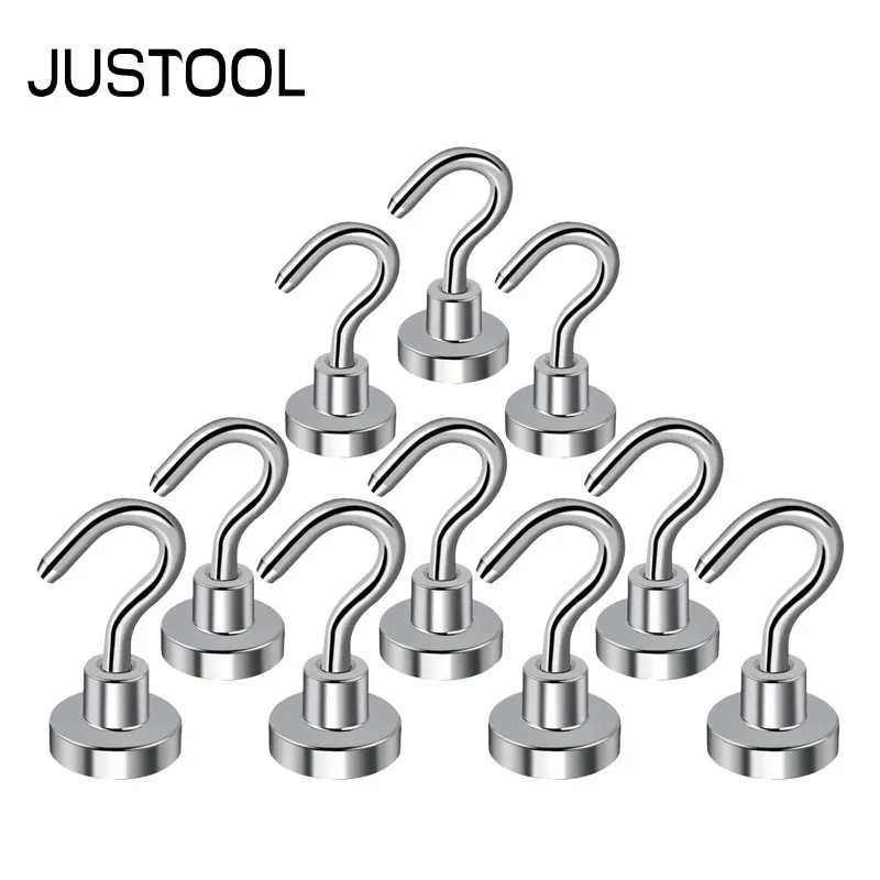Крепкие Магнитные Крючки JUSTOOL, 20 шт., сверхпрочные настенные крючки, вешалка для ключей, пальто, чашек, D16 мм, неодимовые, крюк-магнит