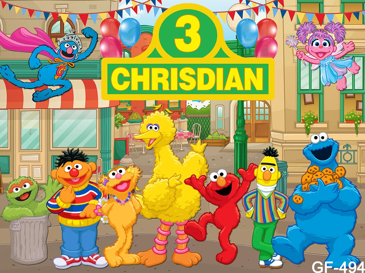 Фоны для фотосъемки новорожденных с изображением Улица Сезам и кирпичной стены