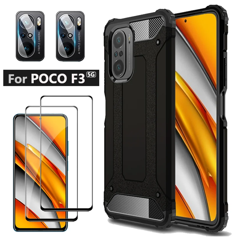 чехол для поко ф3, усиленный ударопрочный чехол на POCO F3 Бронированный чехол и защитное стекло для Xiaomi Pocophone M3X3-NFCX3-Pro чехлы, poco f3 чехол поко м3 про поко x3 про