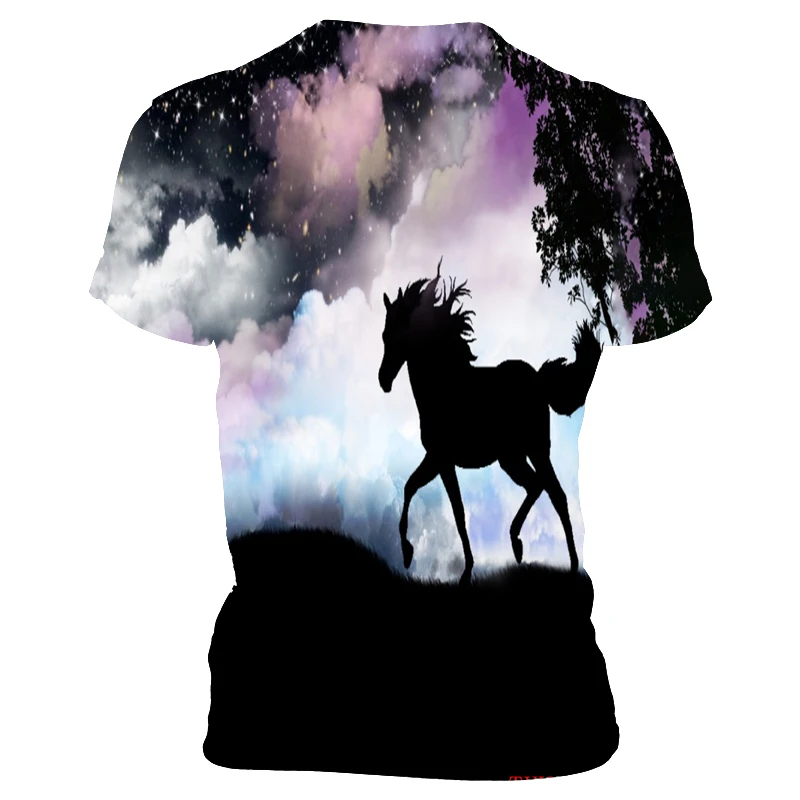 Лето 2021, футболка с круглым вырезом и принтом лошадей, модная фут...