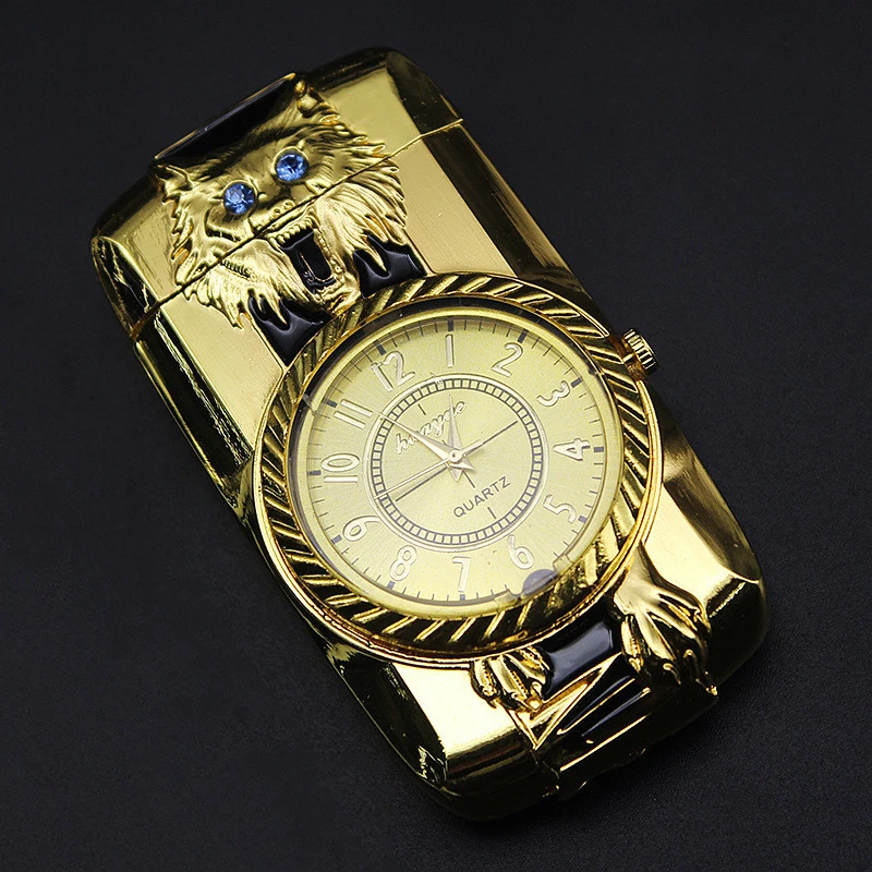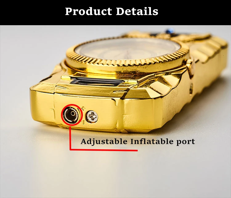 Металлическая надувная зажигалка, модная классическая золотая смотреть факел турбо-зажигалка, аксессуары для курения, подарки для мужчин, гаджеты без газа