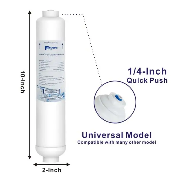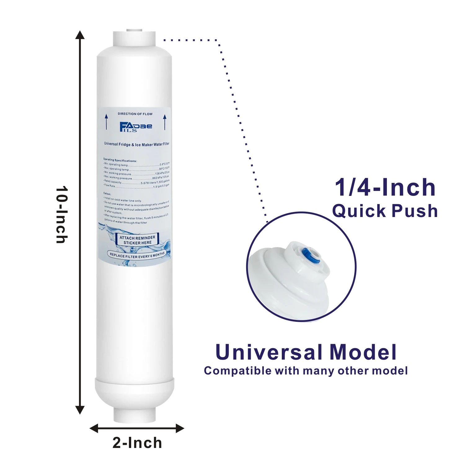 Универсальный встроенный фильтр для воды с 1/4 "встроенная функция быстрого подключения фитинги предназначены для удаления неприятного вкуса и запаха и уменьшить осадок для производства чище, яснее, лучше дегустация воды. Встроенный кокосовый угольный фильтр для воды картридж легко устанавливается на водной линии к автоматическому льдогенератор, кулер для воды, холодильник, система обратного осмоса или система очистки воды.