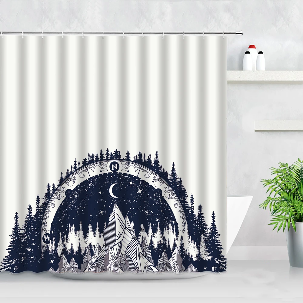 Занавески для душа с зеленым лесом, водонепроницаемые шторы из поли...