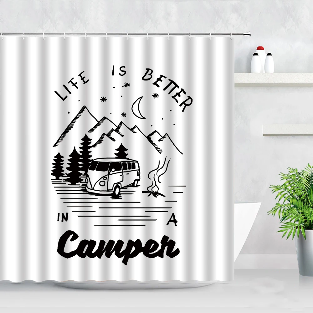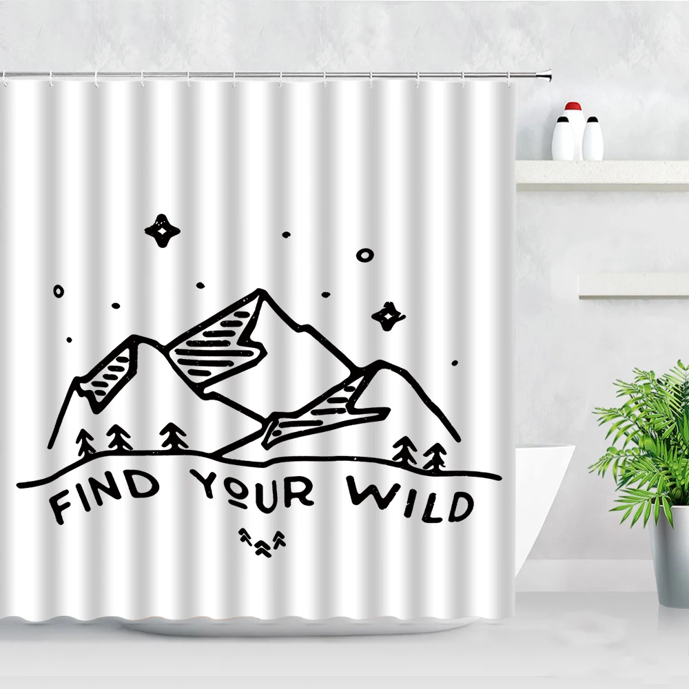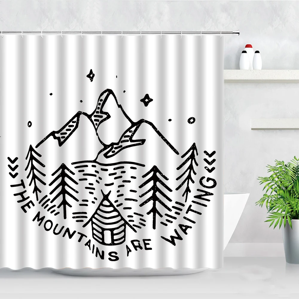 Классическая черно-белая занавеска для душа, водонепроницаемая ткан...