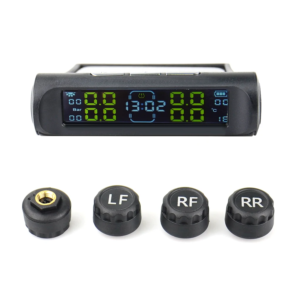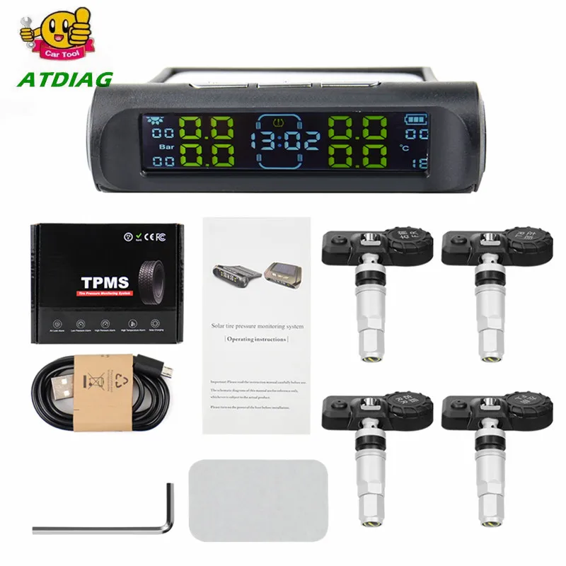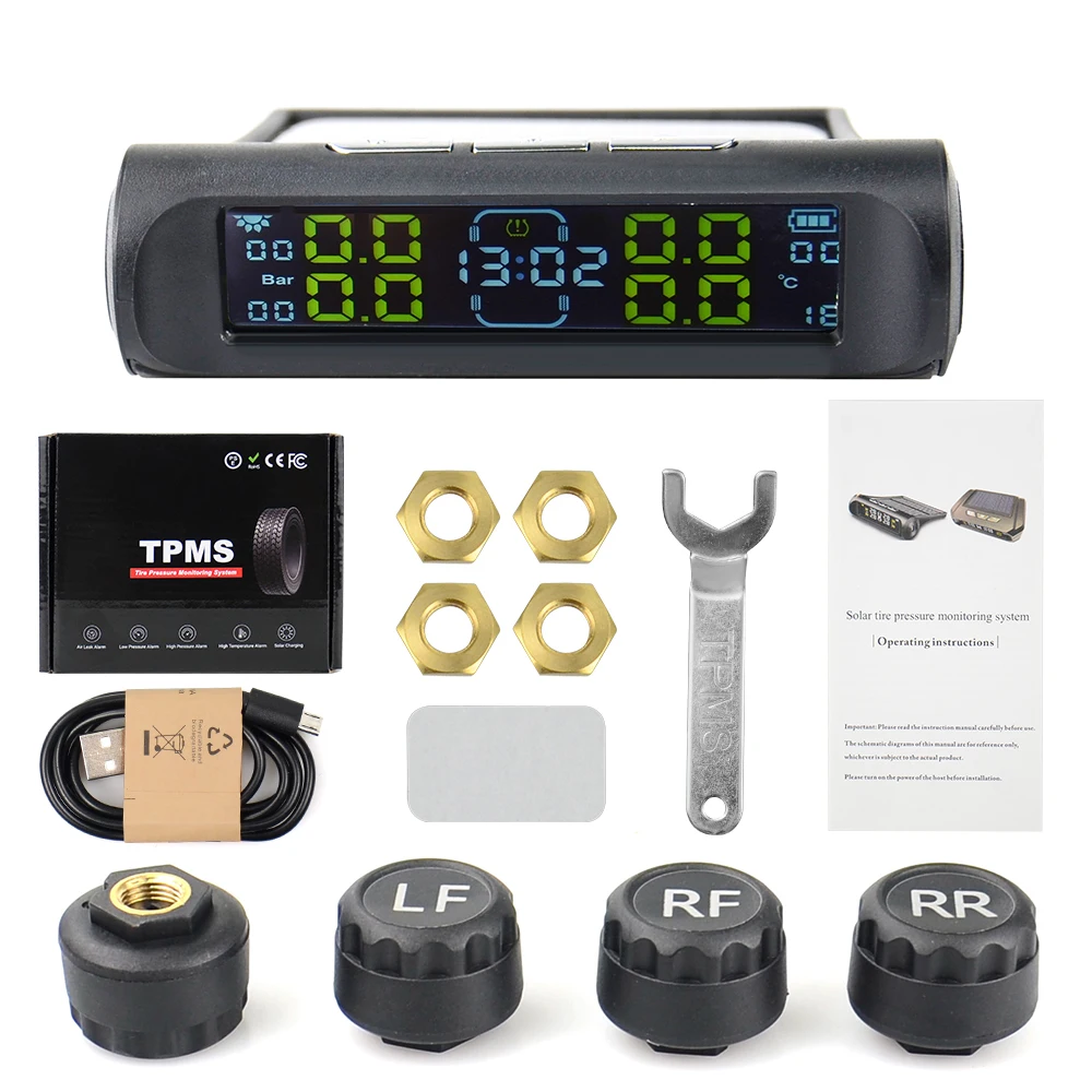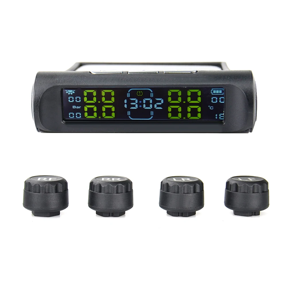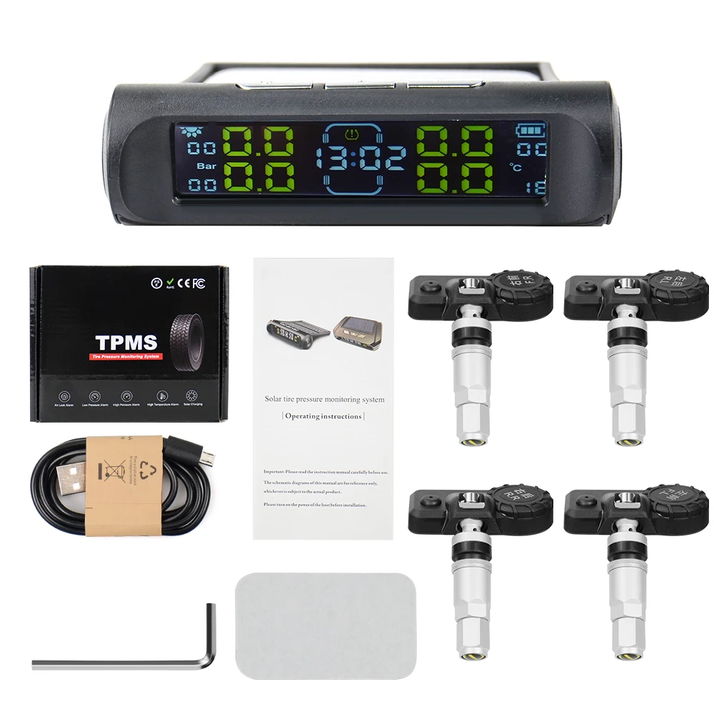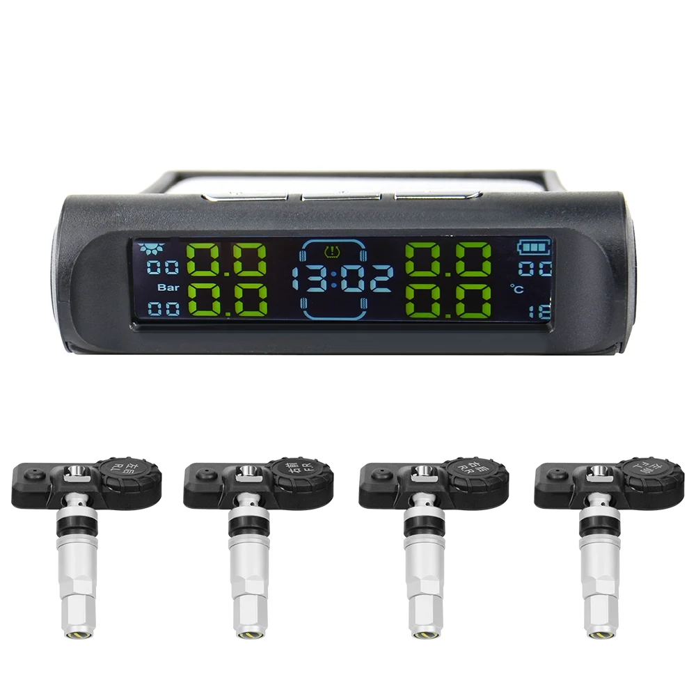 Датчик давления автомобильных шин, Система контроля давления в шинах, солнечная батарея или зарядка от USB, HD ЖК-дисплей, автоматический сигнал тревоги, 4 беспроводных внешних датчика
