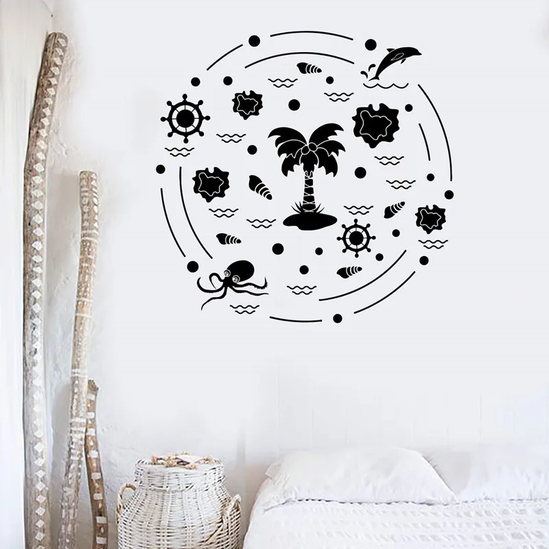 Виниловые наклейки на стену в пляжном стиле, Пальма-осьминог, искусство декорирования, наклейки на стеклянную дверь X10