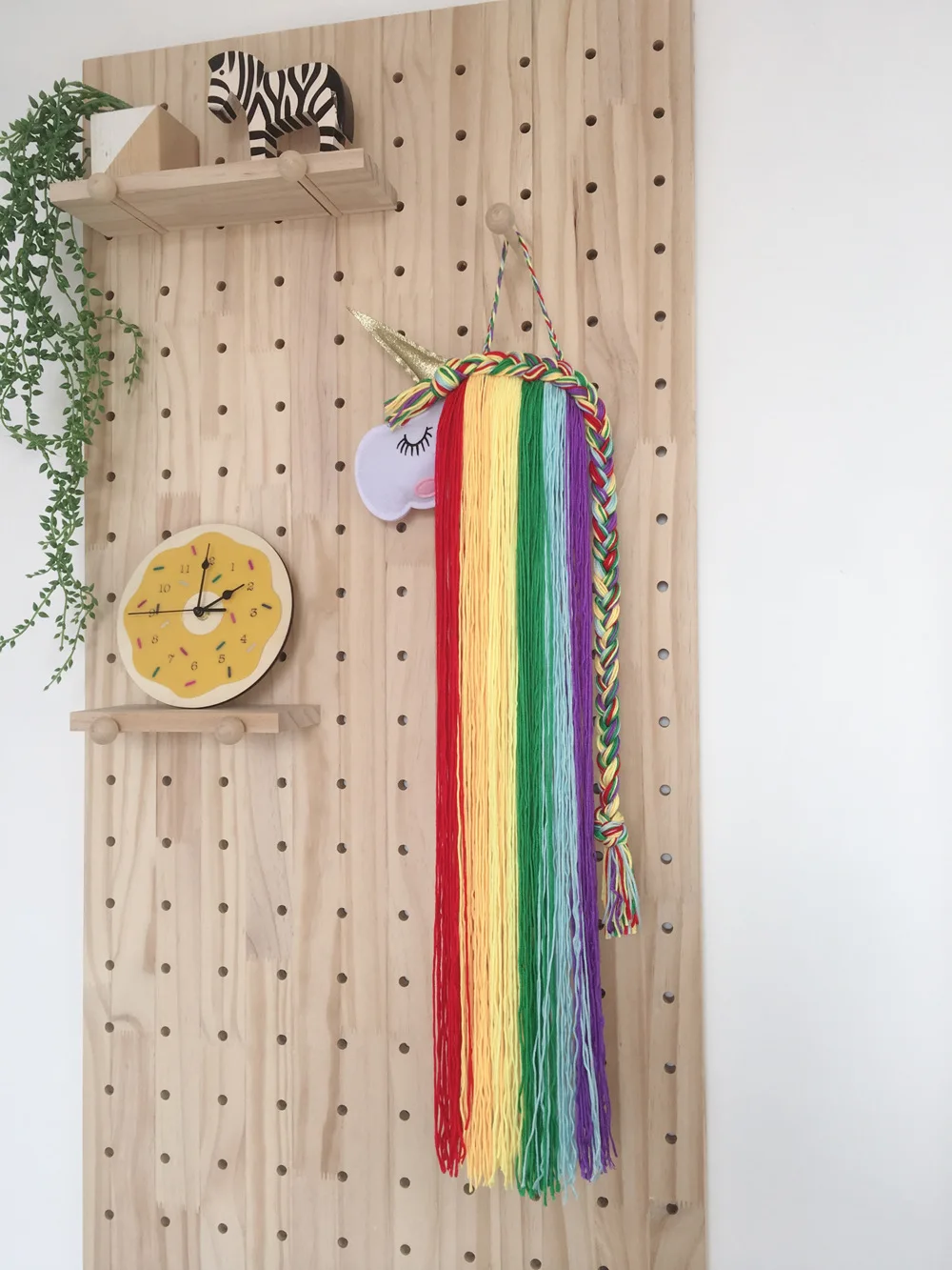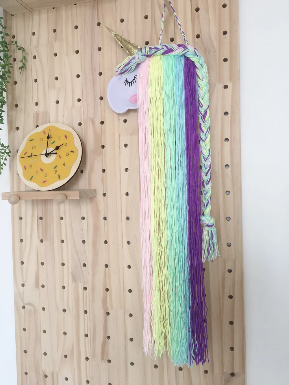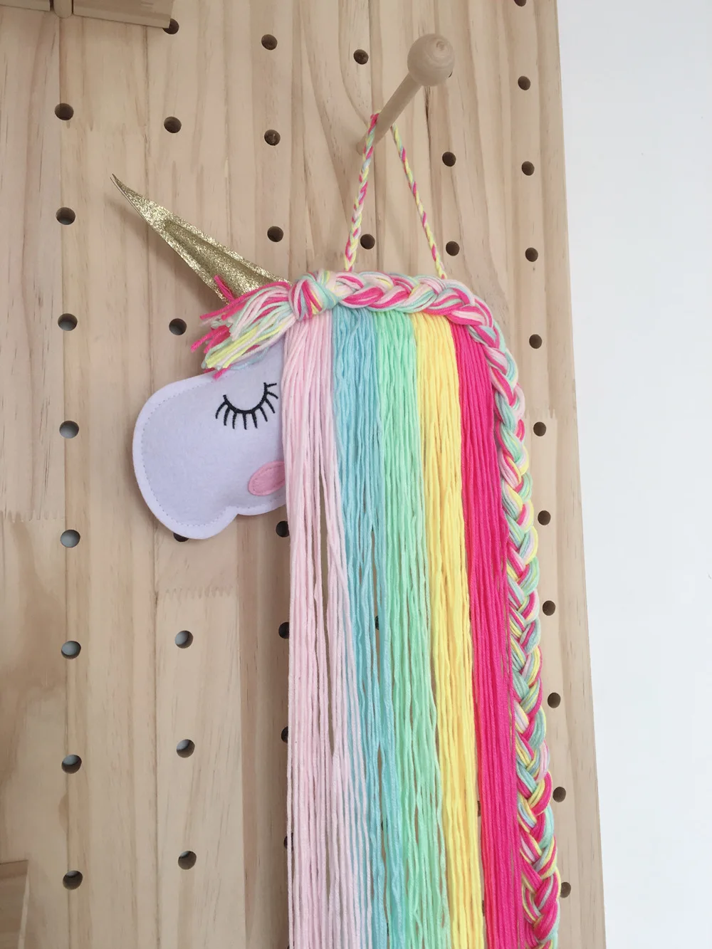 Зажим для волос детский, Радужное макраме, с изображением головы единорога