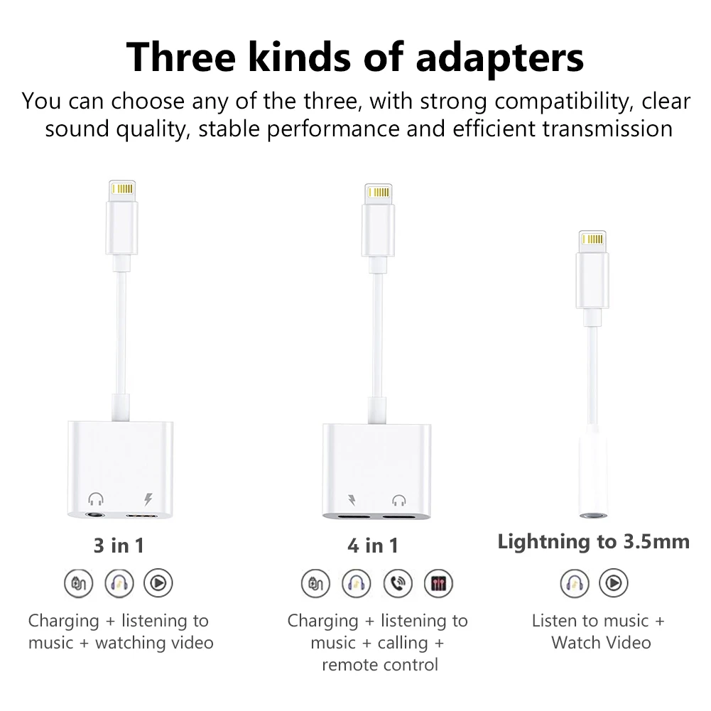 2 в 1 адаптер AUX зарядное Освещение 3,5 мм кабель сплиттер для Apple IPhone 11 12 XS MAX XR X 7 8 Plus Aux кабель