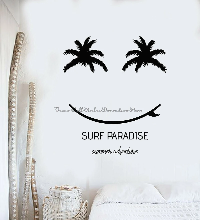 Виниловая доска для серфинга, Виниловая наклейка на стену, доска для серфинга, пальмовый лист, пляж, путешествия, праздничный дом, наклейка для домашнего декора Gift YD20