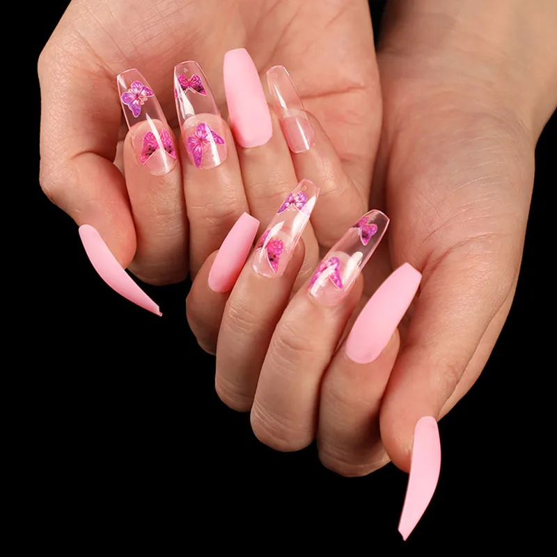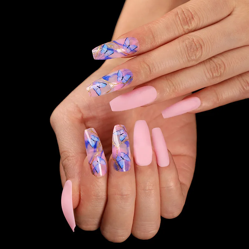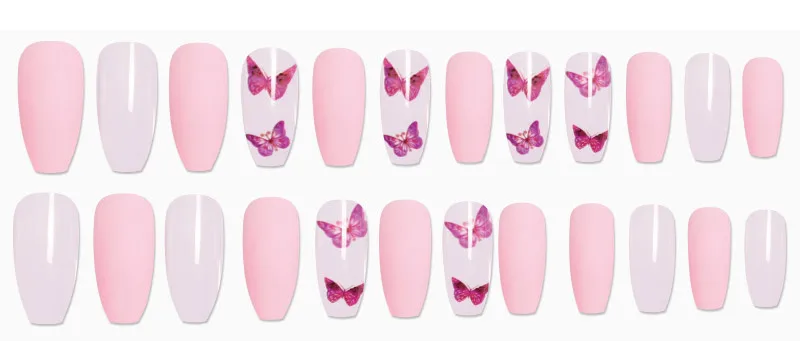 24 шт Французский гроб накладные ногти "Бабочки" накладные ногти градиент Цвет ногтей Наклейка Пресс для ногтей, для нанесения с помощью клея из АБС-пластика для Неил арта украшения для кончиков ногтей