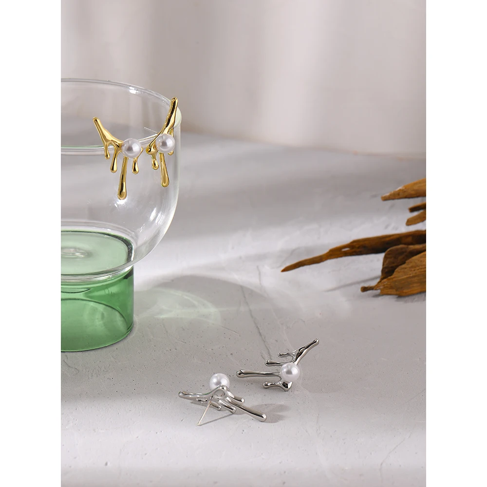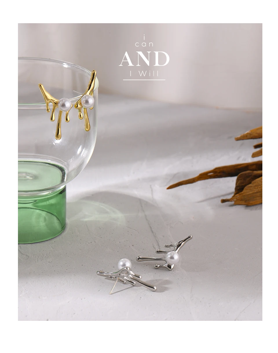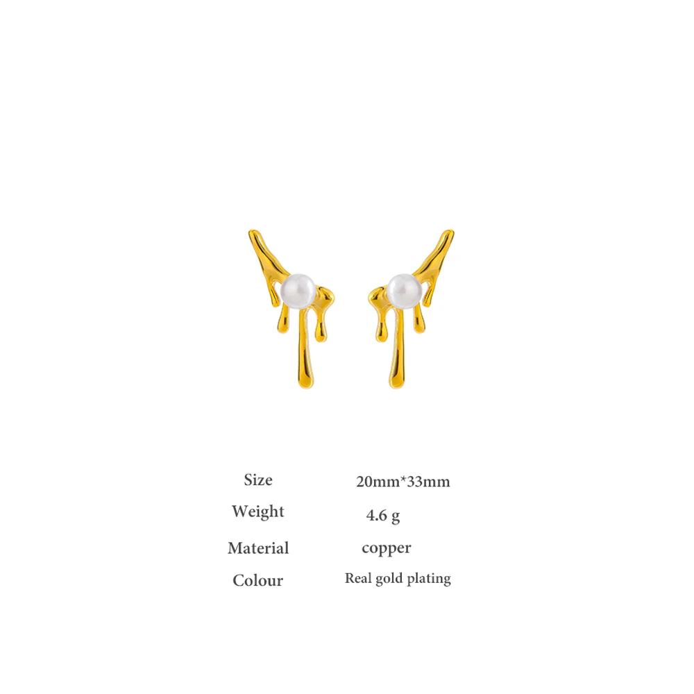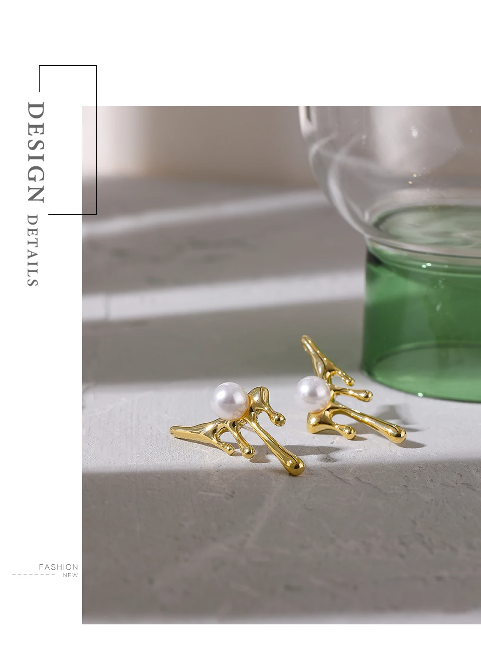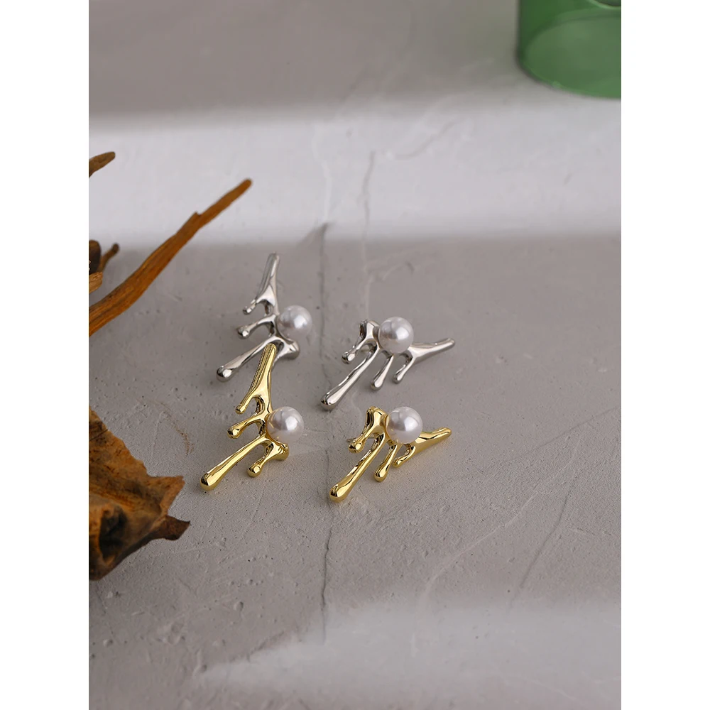 Серьги-гвоздики Yhpup из меди с имитацией жемчуга, геометрический дизайн, 14 к, необычные ювелирные изделия, Подарочная бижутерия