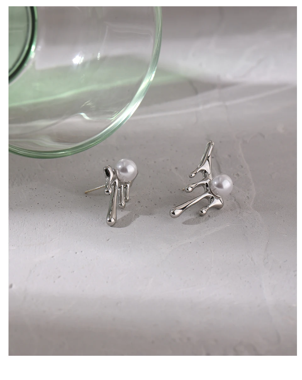 Серьги-гвоздики из нержавеющей стали с натуральным жемчугом