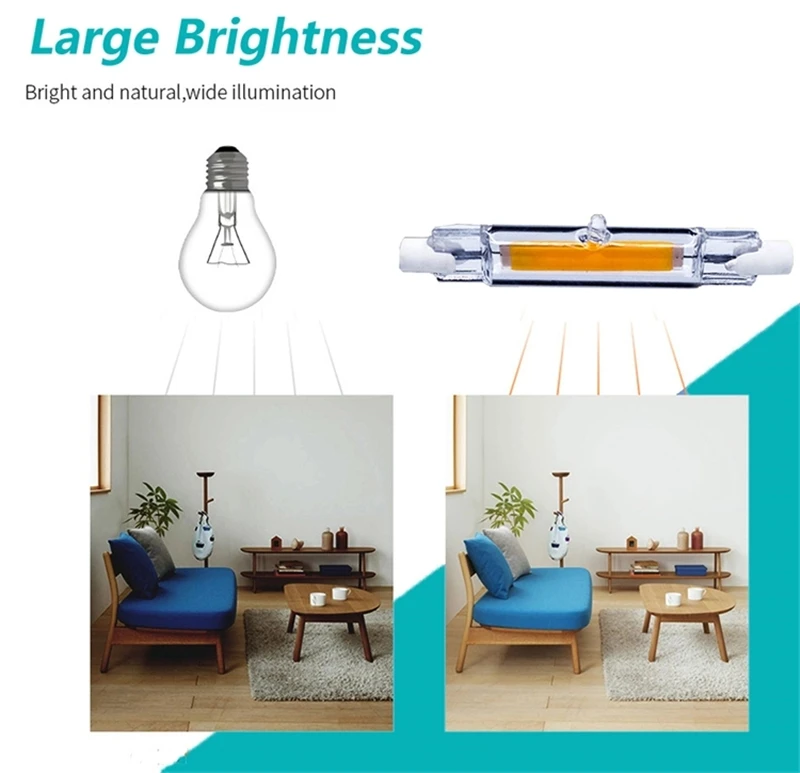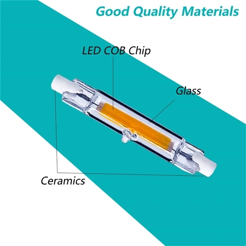 Название продукта: светодиодный светильник COB R7S со стеклянной трубкой Выходная мощность: 5 Вт/10 Вт/20 Вт Тип цоколя: R7S Длина лампы: 78 мм/118 мм светодиодный чип: светодиодный чип COB Количество: 1 шт. COB Вход напряжение: AC 110V 220V (красный, зеленый, синий) Угол пучка: 360 градусов температура тела по уровню поверхности: <80 светодиодный Рабочая температура: от-40 C ~ + 55 C (чип на плате) Срок службы: 50000 часов Сертификация: CE & RoHS излучающий цвет: теплый белый/холодный белый/натуральный белый Цветовая температура: 2500-3200 к (теплый белый) / 6000-6500 К (холодный белый) / 3500-5000K (натуральный белый)