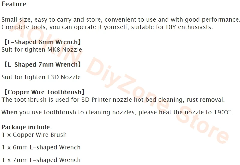 Гаечный ключ для 3D принтера Ender 3 E3DMK8, 6 мм 7 мм, насадка с медной проволокой, зубная щетка для MK8