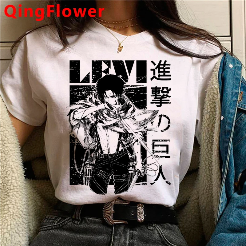 Атака Титанов Женская Повседневная размера плюс пара белая футболка...