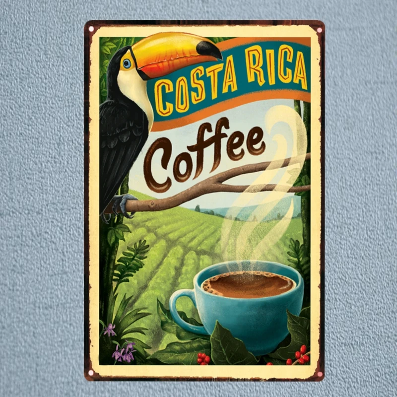 Коста-Рика Кофе Оловянная металлическая табличка Винтаж Placas Decorativas настенный паб стулья для кафе дома Арт Декор Куадрос A-1011