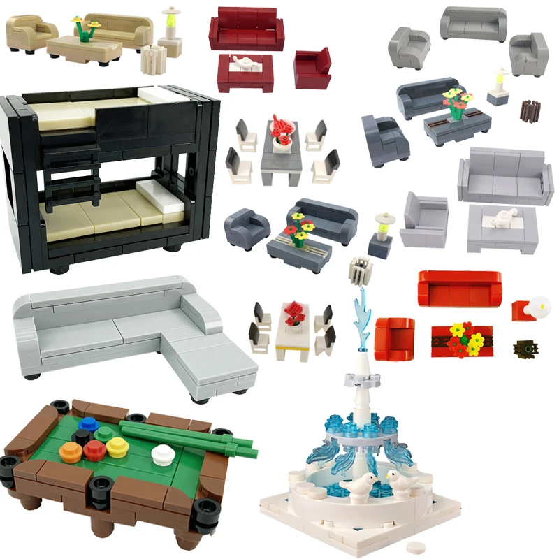 Игрушки для детей ручной работы из серии MOC С блокировкой, фонтан, мягкий бильярдный стол, двухъярусные кровати, аксессуары, строительные блоки, антистресс, подарок