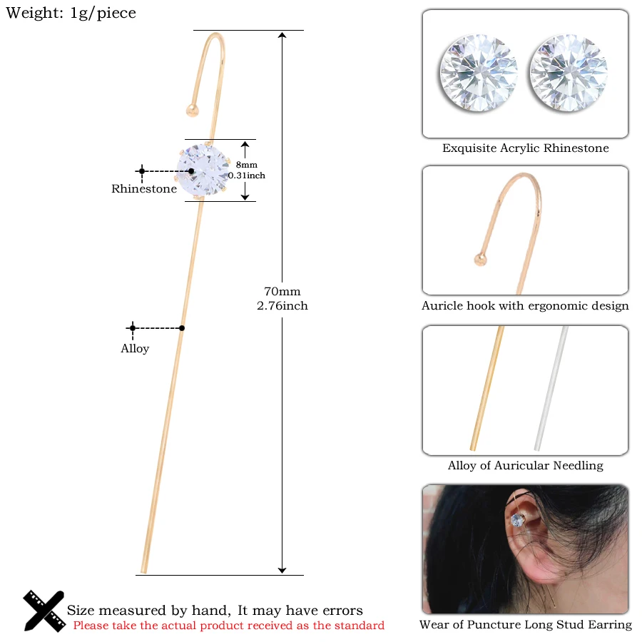 Long earrings sizeEarings size about 70mm, 1g/piece
