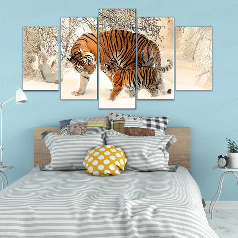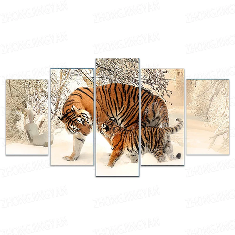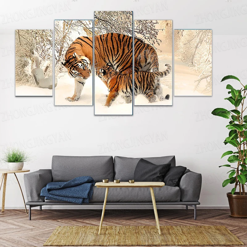 Модульные картины на холсте с HD-печатью, плакат, домашний декор, 5 панелей, снежный лес, фоторамка, Настенная картина для гостиной