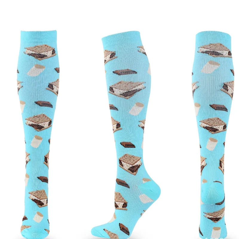 HYSAIXIA Компрессионные носки для мужчин и женщин, мужские спортивные носки, новые Мультяшные принты, печенье, смайлик, торт, перец, любовь, Сжатие икры