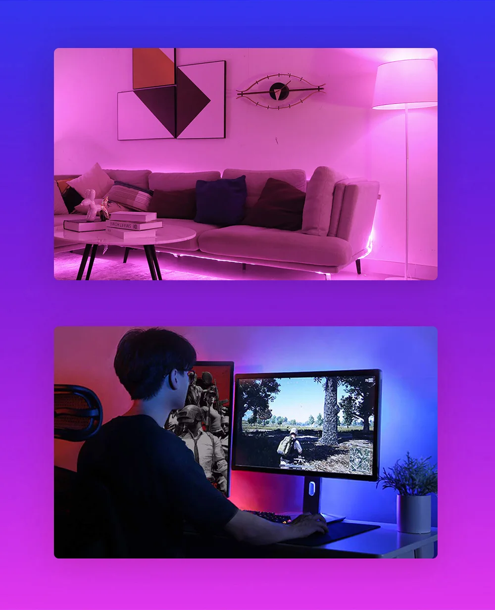 Сочетайте любимую музыку с освещение для семьи, почувствуйте Ритм света. Загрузите приложение YEELIGHT, начните вечерние работы с YEELIGHT lightstrip.