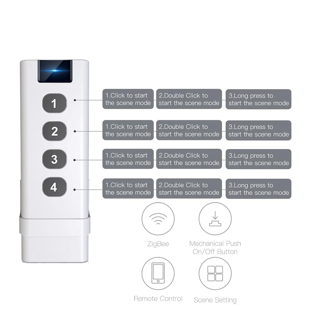Умный беспроводной переключатель Lonsonho Zigbee, светильник зация дома с 4 кнопками, дистанционное управление