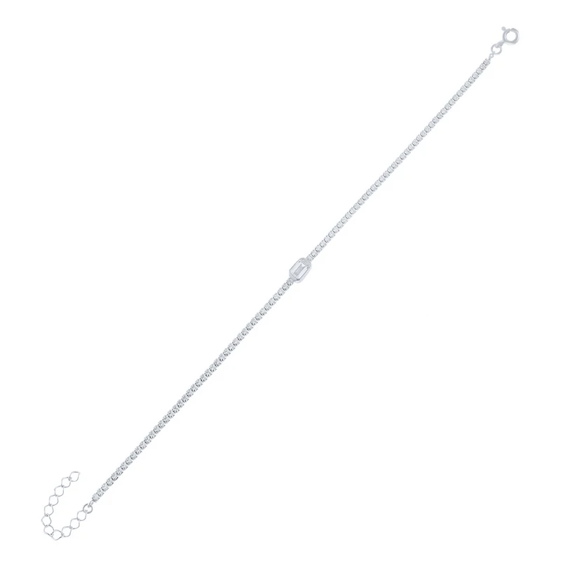 Цепочка из серебра 925 пробы с фианитом, в минималистичном стиле