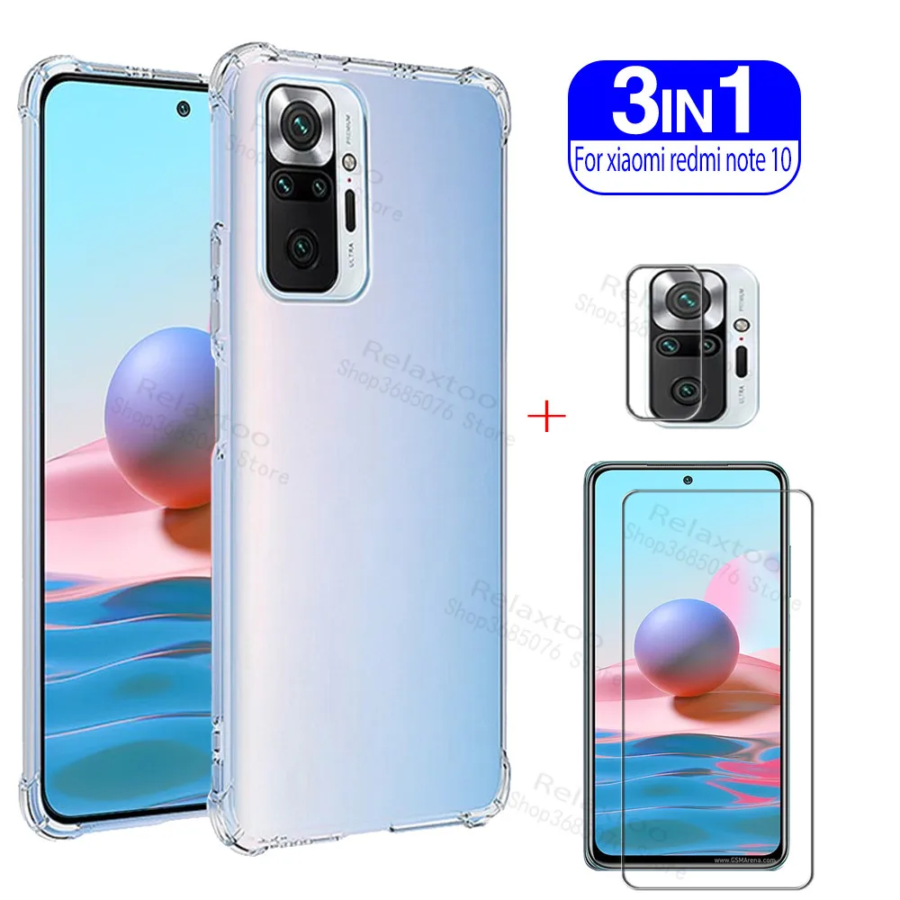 Ударопрочный чехол 3 в 1 для Xiaomi Redmi Note 10 Pro, защита экрана из закаленного стекла для Redme Note10 Pro Max 10s, защитное стекло
