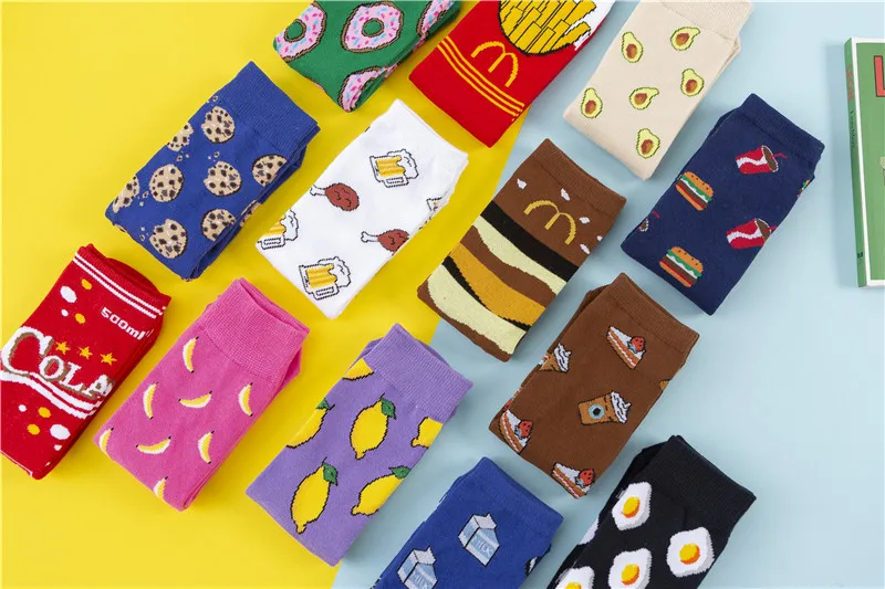 27 моделей счастлива, хлопковые носки для женщин и мужчин, Уличный Скейтборд модное платье для девочек носки с принтом фрукты Harajuku подарок вишня груша аромат