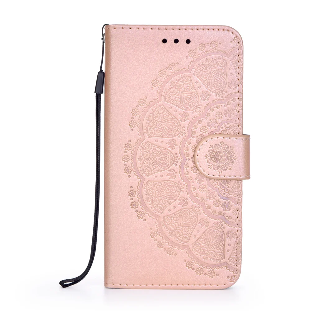 Features 33D Mandala flower Emboss Luxury Wallet PU Leather Phone Cover case