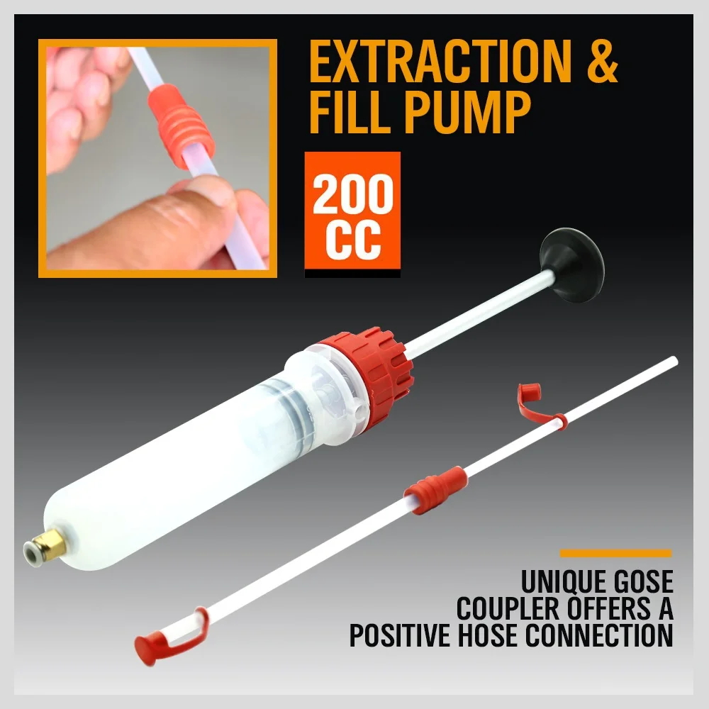 Использование с несколькими жидкостями: Идеально подходит для эвакуации или долива основных цилиндров и других резервуаров, извлечения тормозной жидкости из резервуара и добавления новой жидкости перед смывом тормозной жидкости в суппортах, для рулевого управления, охлаждающей жидкости, замена масла, замена смазки заднего конца оси, Заполнение коробок передач Без щупа, которые требуют откачки жидкости через отверстие для заполнения в боковой части транс, и заполнение ящиков и дифференциалов; Может даже переносить высокую вязкость флуидной жидкости, подходящей для тормозной жидкости, моторного масла, зубчатое масло, трансмиссионная жидкость, вода и т. Д.